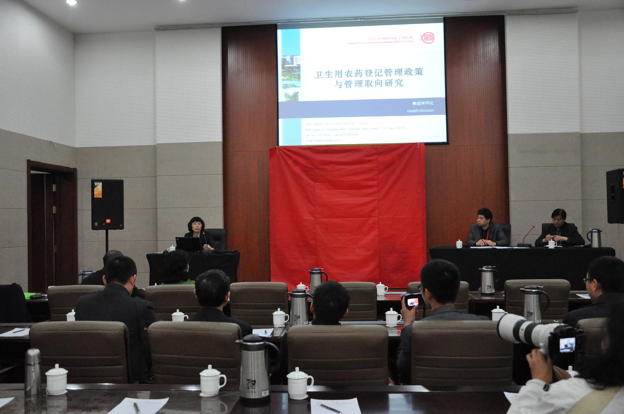 1、由農(nóng)業(yè)部農(nóng)藥檢定所副處長(zhǎng)陶嶺梅作“衛(wèi)生用農(nóng)藥登記管理政策與管理取向研究”的報(bào)告。