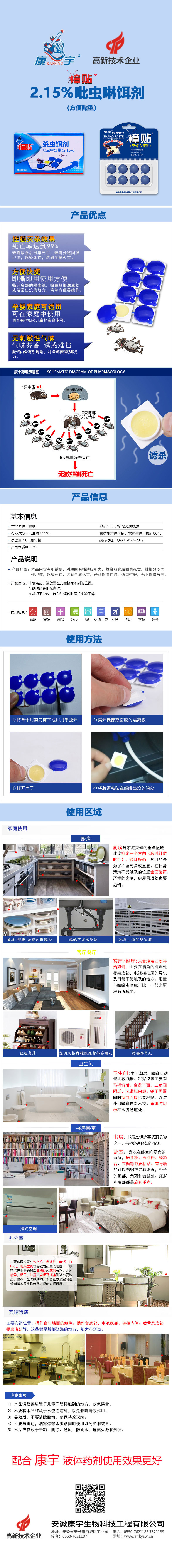 2、適合于各種高標準場所,如家具、賓館、醫院、運輸工作、商場、機房和各種電器設備等,可直接深入縫隙施藥,不易被兒童接觸。
