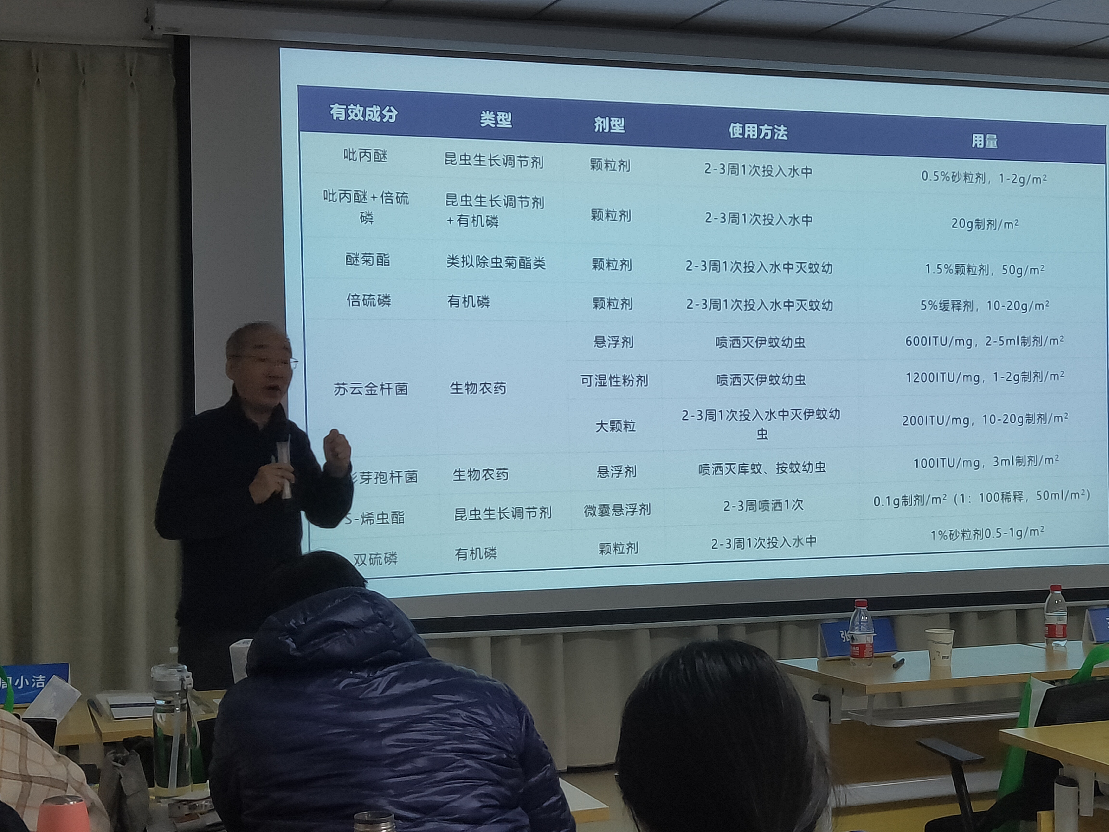 全國專家組委員、中國預防醫(yī)學會蒼蠅學組組長、上海市疾控預防控制中心主任、中國衛(wèi)生有害生物防制協(xié)會藥械協(xié)作組指導專家冷培恩老師從滋生環(huán)境、棲息環(huán)境、吸血(覓食)環(huán)境蚊、蠅化學防控實用技術,以及針對幼蟲和成蟲如何選擇藥品,怎么用藥,給大家上了生動的一課。